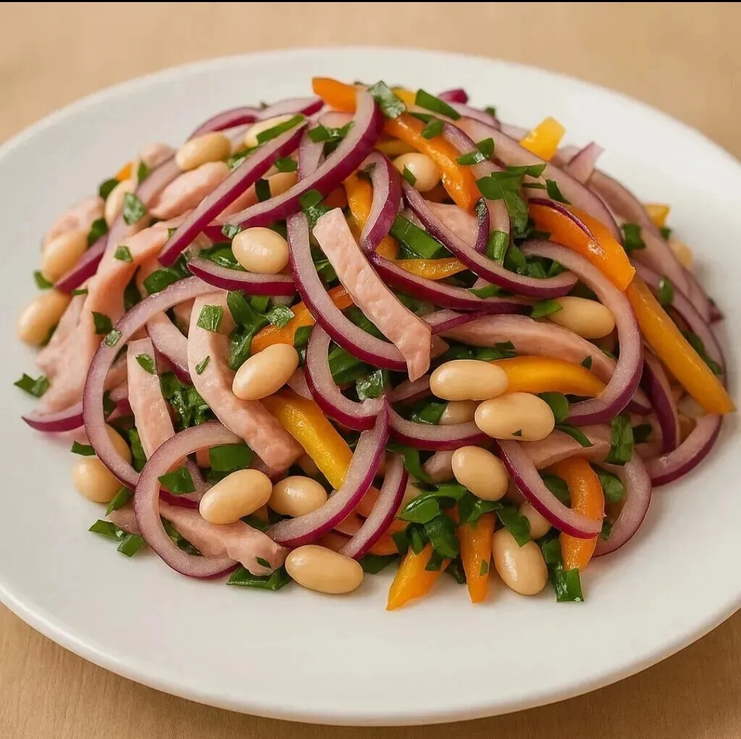 Салат с карбонадом и фасолью — это не только быстрое и простое блюдо, но и истинное наслаждение для гурманов. Он идеально подходит как для обеденного стола, так и для ужина, радующий своим насыщенным вкусом и ароматом.