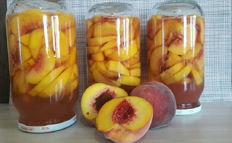 Чтобы закатать персики, достаточно простых ингредиентов: