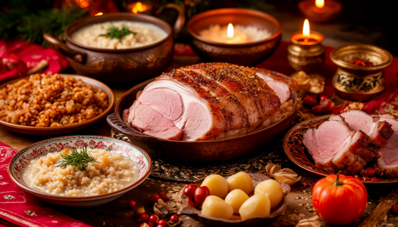 Ключевым элементом празднования 14 января является употребление блюд из свинины, что считается залогом грядущего благосостояния.
