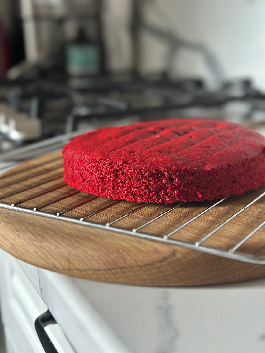 Первым делом было решено оставить эксперимент с начинкой в стороне. На протяжении нескольких лет блюдо, не разочаровывающее в своих результатах, — «Красный бархат». Рецепт гарантирует мягкие коржи с еле уловимой шоколадной ноткой. Этот эффектный торт особенно выигрышно смотрится в разрезе.