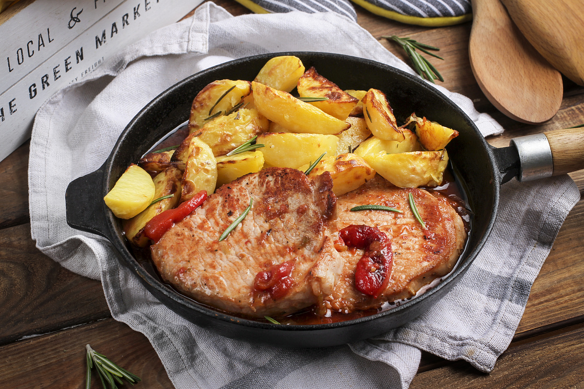 Стейки из свинины по-деревенски с картофелем и соусом Лечо — это искреннее и ароматное блюдо, вдохновленное венгерскими кулинарными традициями. Лечо, восхитительное сочетание овощей, представлено здесь как гарнир к мясу. Это блюдо сочетает в себе текстуры и вкусы, способные удовлетворить самых взыскательных гурманов.
