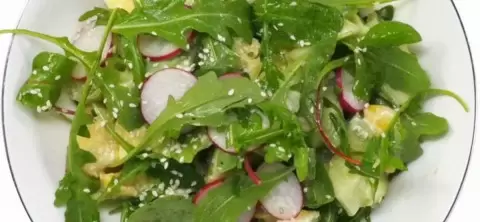 Этот салат — идеальное блюдо для летних встреч и праздников. Сочетающий сладость персиков и хрустящий вкус редиса, он привлекает внимание своим необычным союзом, который великолепно соединяет терпкий соус на основе кунжутного масла и рисового уксуса.