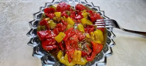 В основе рецепта лежат три вида перца — красный, желтый и пикантный зеленый, общий вес которых составляет 500 граммов. Перед запеканием перцы необходимо тщательно вымыть и сделать несколько проколов вилкой, чтобы они не лопнули в процессе. В глубокую форму для запекания стоит налить немного растительного масла, выложить перцы и запекать при температуре 190°C около 20 минут, пока они не приобретут легкую карамельную корочку.