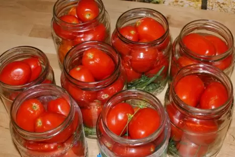 3. Аккуратно уложить помидоры в банки и залить кипятком, оставив на 15-20 минут для предварительной консервации.