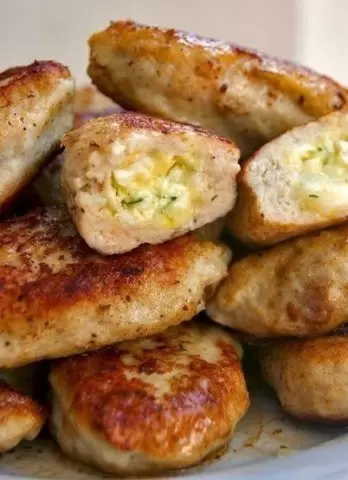 - Формируем котлетки. Намочите руки в воде, возьмите ложку фарша и сделайте в середине углубление. Добавьте начинку, прикройте фаршем сверху и скатайте в шарик.