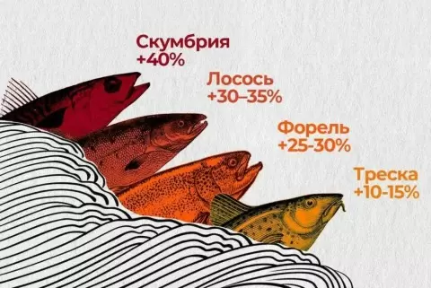 - Форель: цена увеличилась с 950–1000 до 1200–1300 рублей за килограмм.