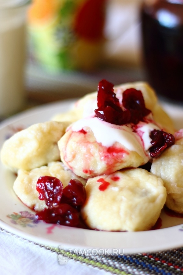 Готовые вареники нужно достать шумовкой и выложить на тарелку. Сдобрите их растопленным сливочным маслом, а для разнообразия добавьте немного сметаны, сахара, меда или сиропа по вкусу. В результате получится очень вкусно и сочно – ваши близкие будут в восторге!