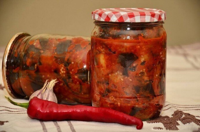 Консервирование: Разложить готовые баклажаны по стерилизованным баночкам, плотно закрыть крышками и закатать.