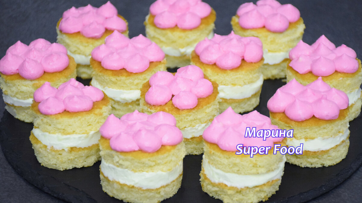 Каждое бисквитное кольцо соединить с помощью белого крема, а затем украсить сверху розовым. Убрать готовые пирожные в холодильник на несколько часов для пропитки – и десерт готов радовать своим неповторимым вкусом!