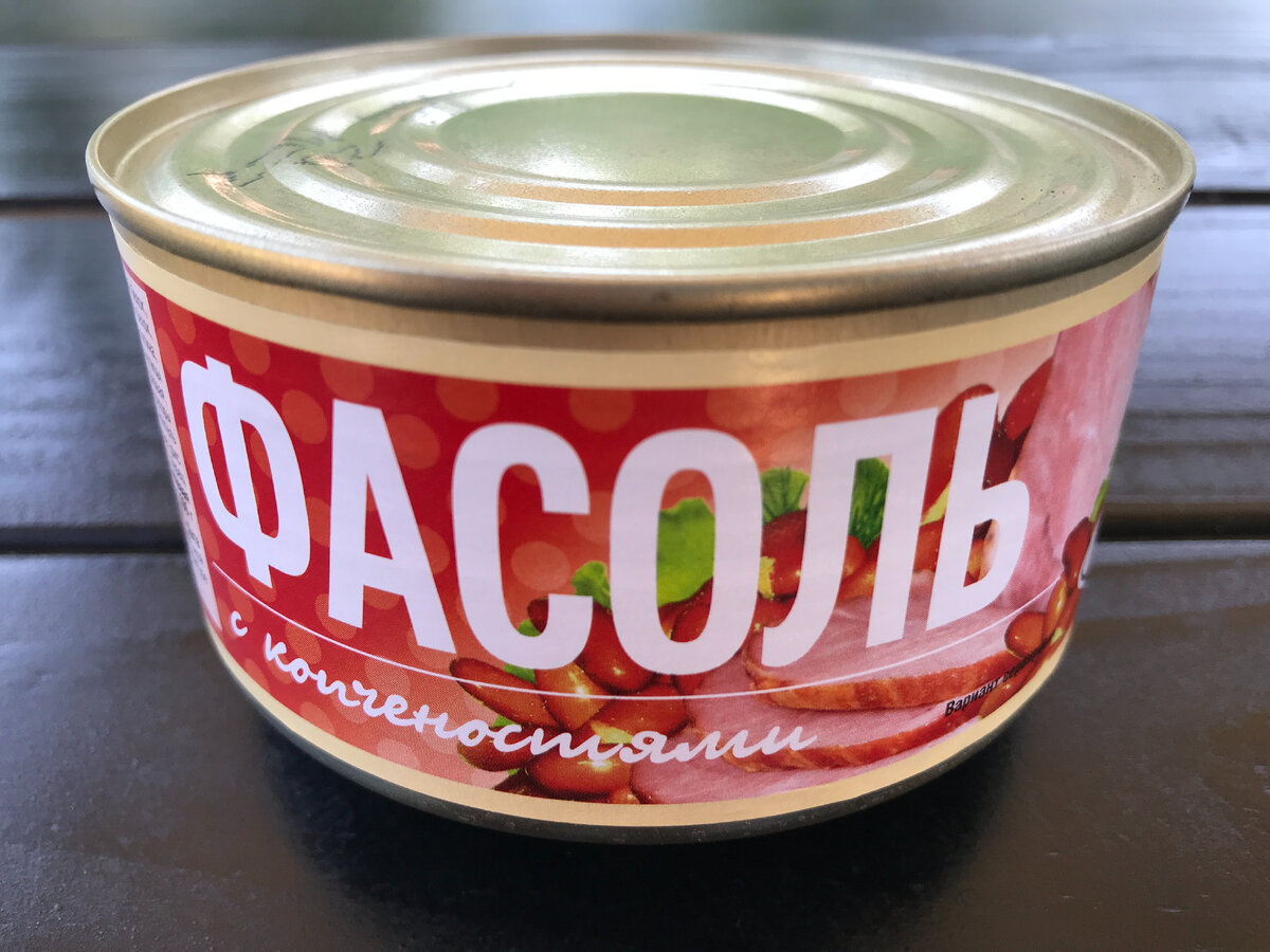 Речь пойдет о банке "Фасоль с копченостями", произведенной по заказу компании «Рузком» на Лыткаринском мясоперерабатывающем заводе. Этот продукт впервые попал на глаза, и по составу он выглядел довольно многообещающе — фасоль и варено-копченые деликатесы вроде свинины и говядины.