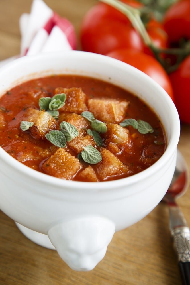 Этот итальянский томатный суп с сухариками накрывает атмосферой тепла и уюта, идеально подходя для любого времени года. Приятного аппетита!