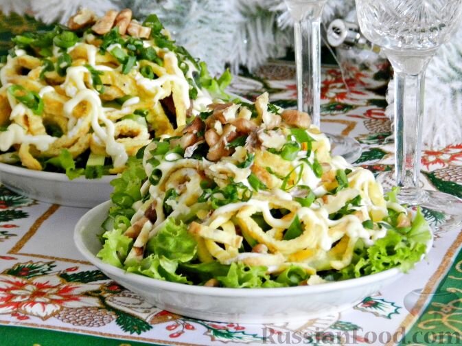 Среди новинок выделяется салат «Римский», готовящийся с обжаренной говядиной, яичными блинчиками и свежими огурцами. Этот легкий, но сытный салат станет прекрасным дополнением к основным блюдам на праздничном столе.