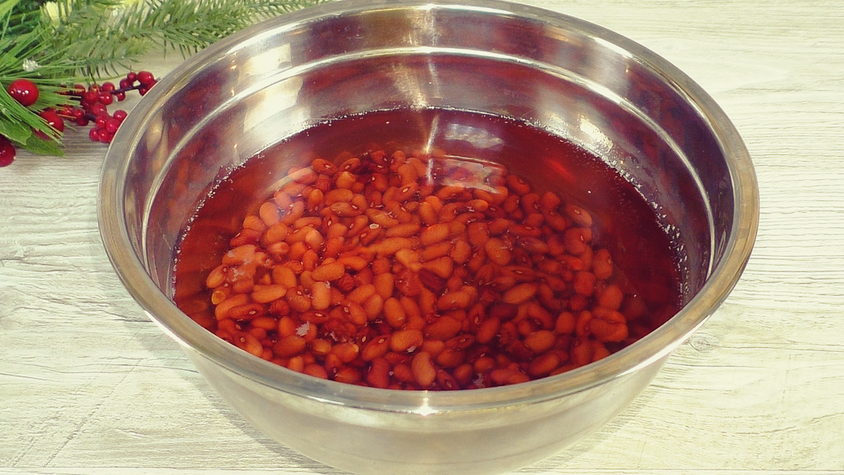Для начала фасоль рекомендуется замочить в холодной воде на ночь. Утром нужно промыть ее, залить чистой водой и варить до готовности. В процессе варки добавьте 1 ч. л. сахара для усиления вкуса, а немного соли добавьте лишь в конце.