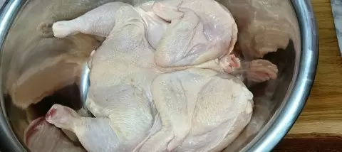 Для начала потребуется курица весом около 1,2 кг. Важно тщательно промыть ее и удалить лишний жир и кожу. Чтобы курица готовилась равномерно, следует разрезать ее вдоль грудки и немного отбить, накрыв пленкой.