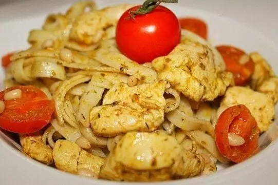 Встречайте идеальное блюдо для быстрого ужина – паста с курицей, соусом песто и кедровыми орешками. Этот замечательный рецепт рассчитан на 4 порции и готовится всего за 30 минут.