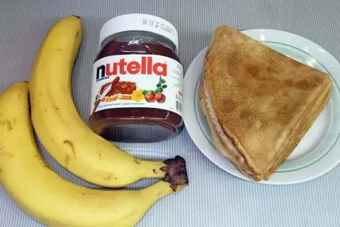 Приготовление блинчиков с бананом и Нутеллой