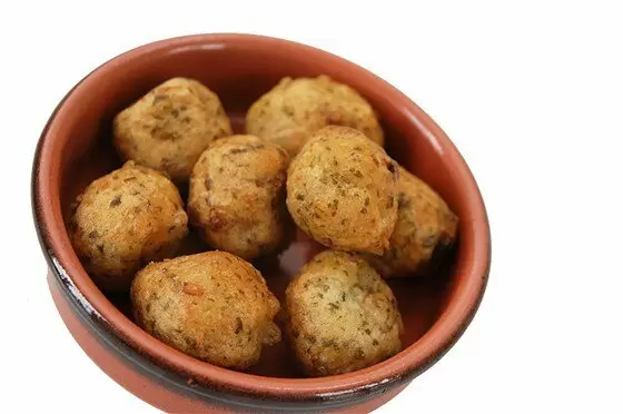 Сначала следует поместить неочищенный картофель и соленую треску в кастрюлю, залить водой, довести до кипения, а затем на уменьшенном огне готовить около 30 минут, пока картофель не станет мягким.После этого нужно извлечь треску и дать ей немного остыть. Слить воду с картофеля, очистить его от кожуры и размять в миске. Удалить кожу и кости из рыбы, мелко разбив мякоть и смешав ее с картофельным пюре.Следующий шаг — добавить мелко нарезанный чеснок и рубленую петрушку, по одному вводя яичные желтки. В чистой сухой миске взбить белки с солью до образования устойчивой пены, и аккуратно ввести их в основную массу.В глубокой сковороде разогреть масло до температуры 180 градусов (поджаренный кусочек хлеба должен стать коричневым за 30 секунд). С помощью двух столовых ложек сформировать небольшие шарики из смеси картофеля и рыбы, опустить их в горячее масло и обжаривать до золотистой корочки. Вынуть готовые шарики с помощью шумовки и дать стечь лишнему маслу. Подавать немедленно.