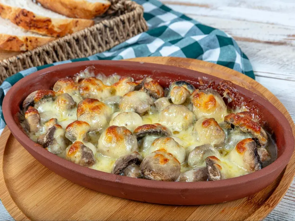Запекать при 200 градусах в течение 20-25 минут до мягкости грибов.